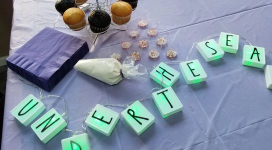 Of course, it's not a party without cupcakes! Everyone will get their own purple and teal tie dye swirl frosting cupcake to decorate with edible pearls and sprinkles.