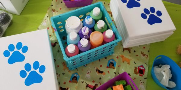 Now it's time to have some fun with our new friends, we'll do a paw print painting to decorate our furry friend's new home.