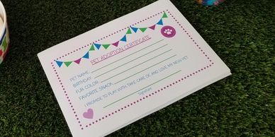 Once everyone picks their new friend, we'll fill out an adoption certificate and make them a collar.